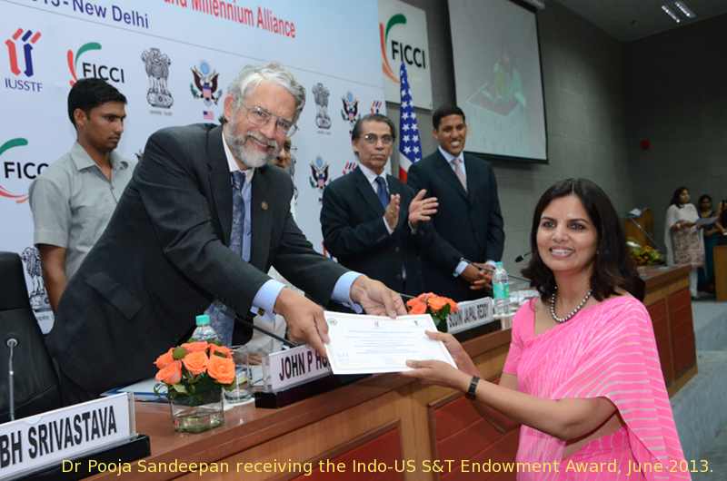 Dr Pooja Sandeepan, Jaipur. Dr Pooja Sandeepan received "indo-US Science and Technology Endowment Award" June 24, 2013.