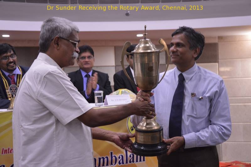 Dr Sunder, Chennai. Dr S Sunder, Chennai, Receiving the Best Rotarian Award for the year 2013.