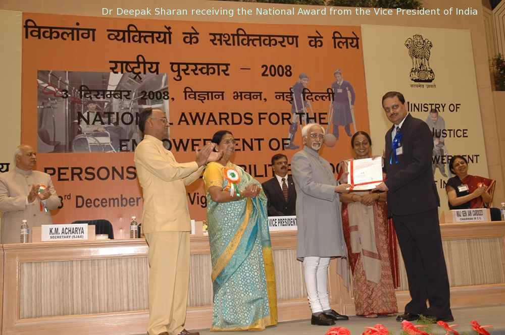 Dr Deepak Sharan, Bengaluru. National Award 2008 for the Best Individual working for the Empowerment of Persons with Disabilities.