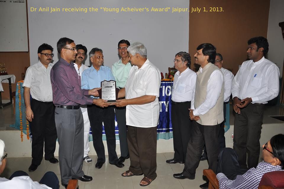 Dr Anil Jain, Jaipur. Times Wellness Rajasthan Health Awards 2013. Conferred on July 26, 2013 at Jaipur.